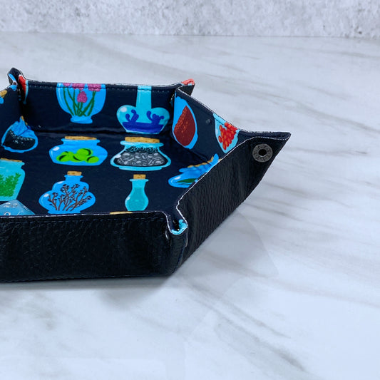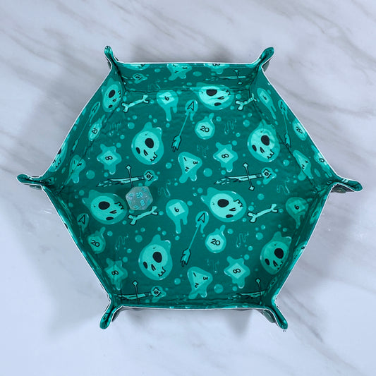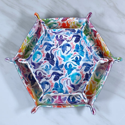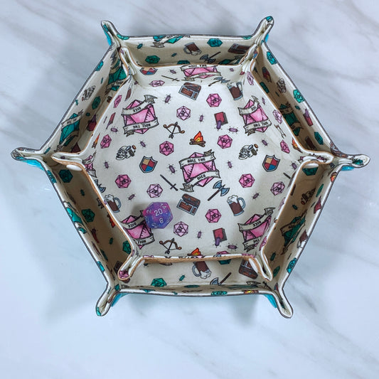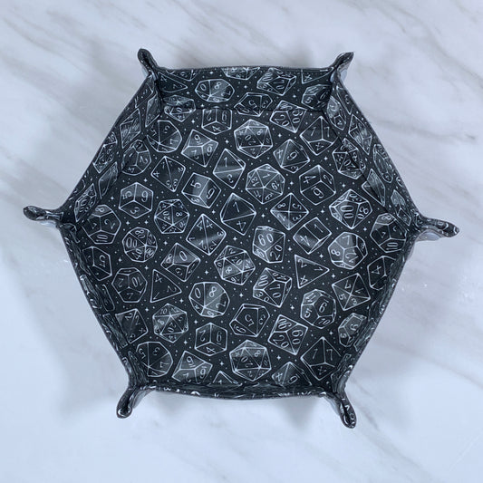 Hex Dice Trays are custom sewn to order and ship within 1-2 weeks.