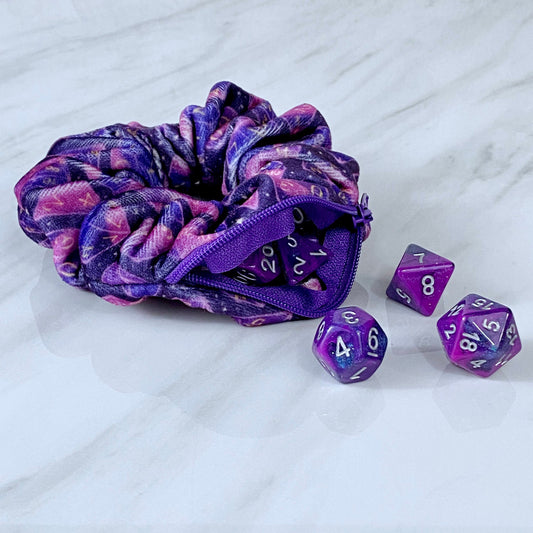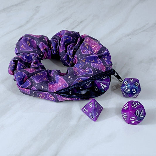 Velvet Galaxy Dice Zipper Stash Scrunchie