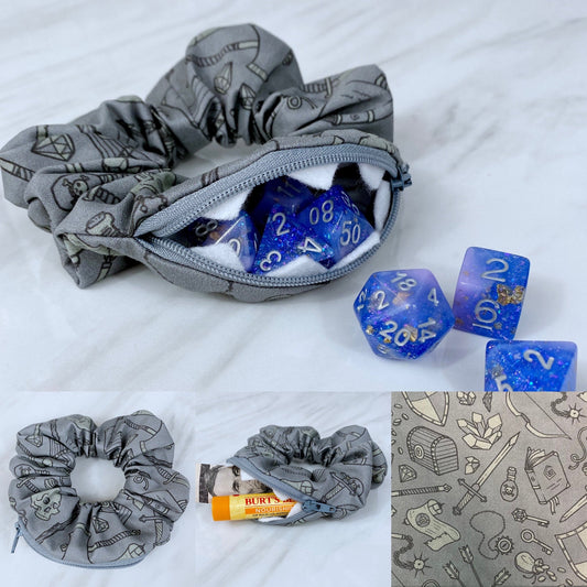 Velvet Dice Zipper Stash Scrunchie