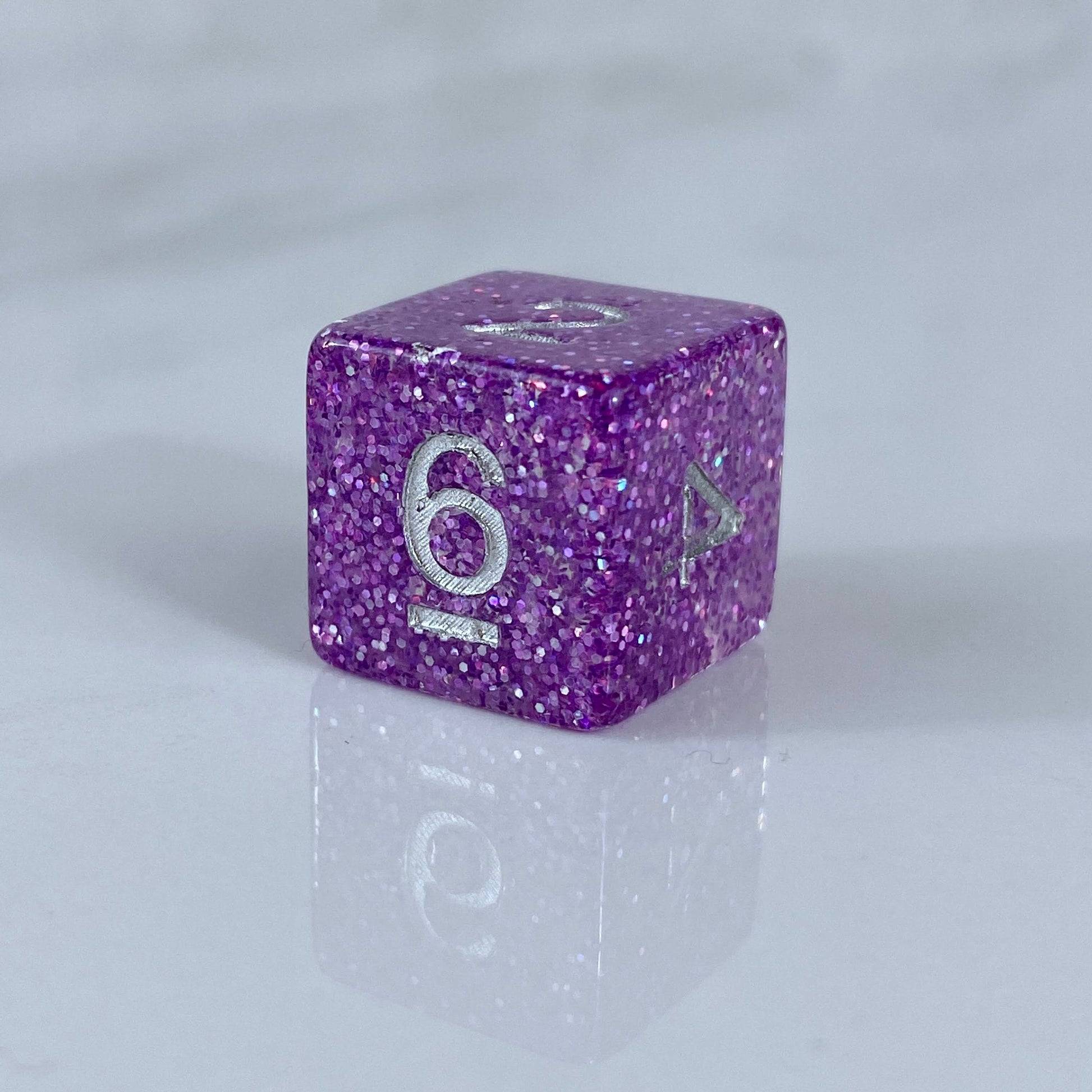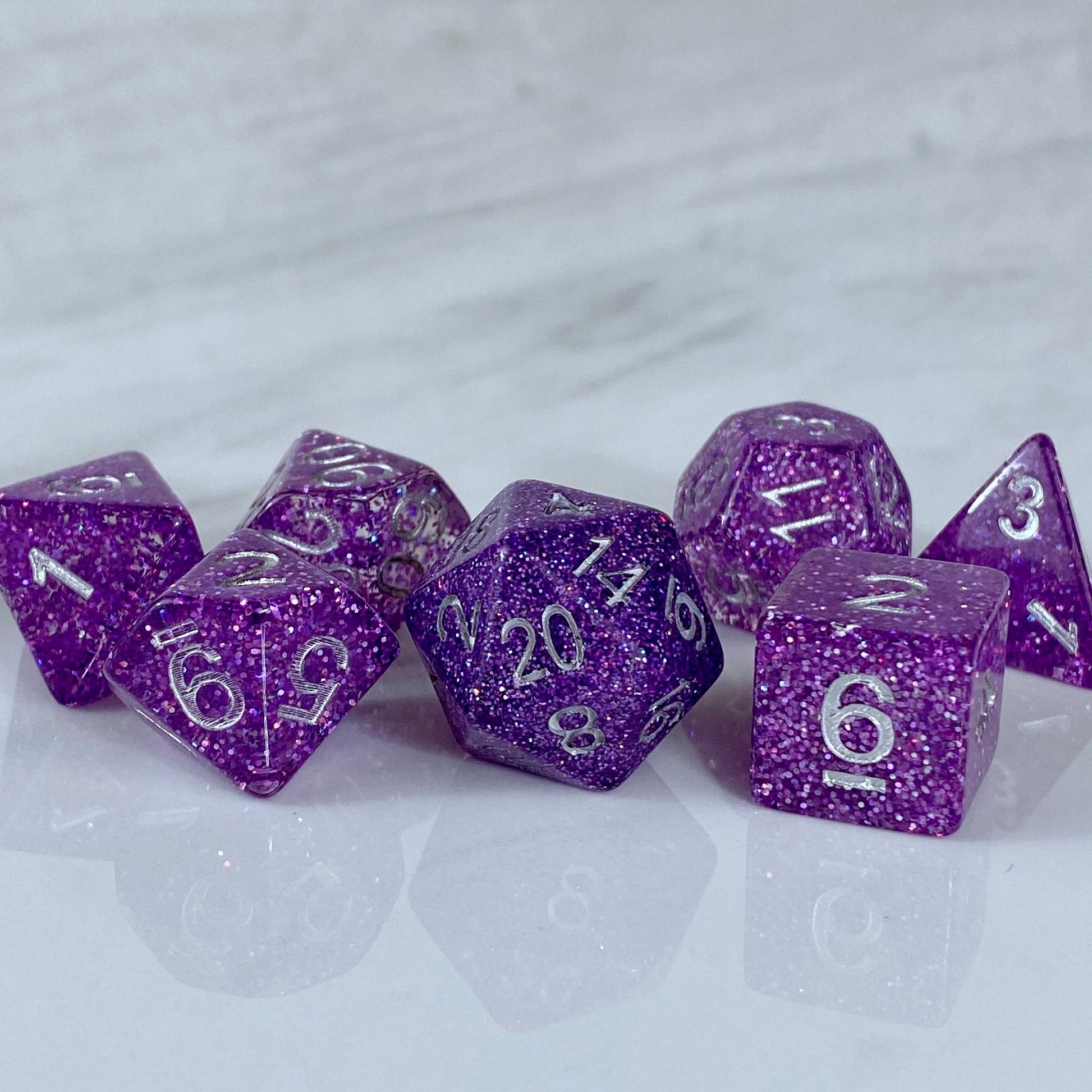 Packed with fine glitter these dice shimmer and sparkle. No promises these will allow you greater invisibility, fly, or polymorph, but hey, it never hurts to try.