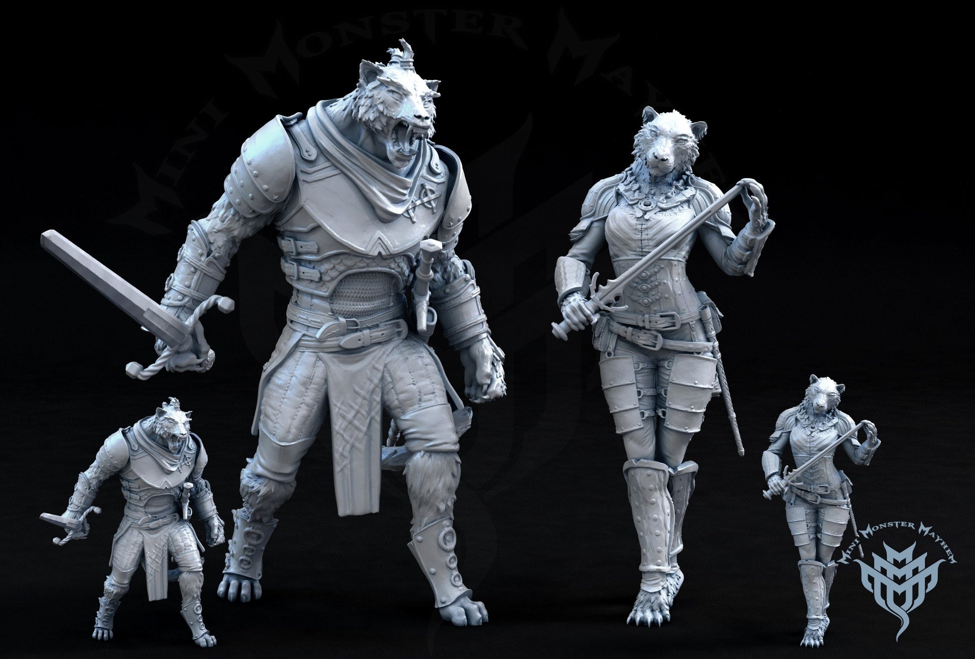 Tabaxi Male: Available in both a medium creature (25mm base, 35mm tall) and large creature (50mm base, 70mm tall). The base is shipped unattached and will need to be assembled into the final miniature.